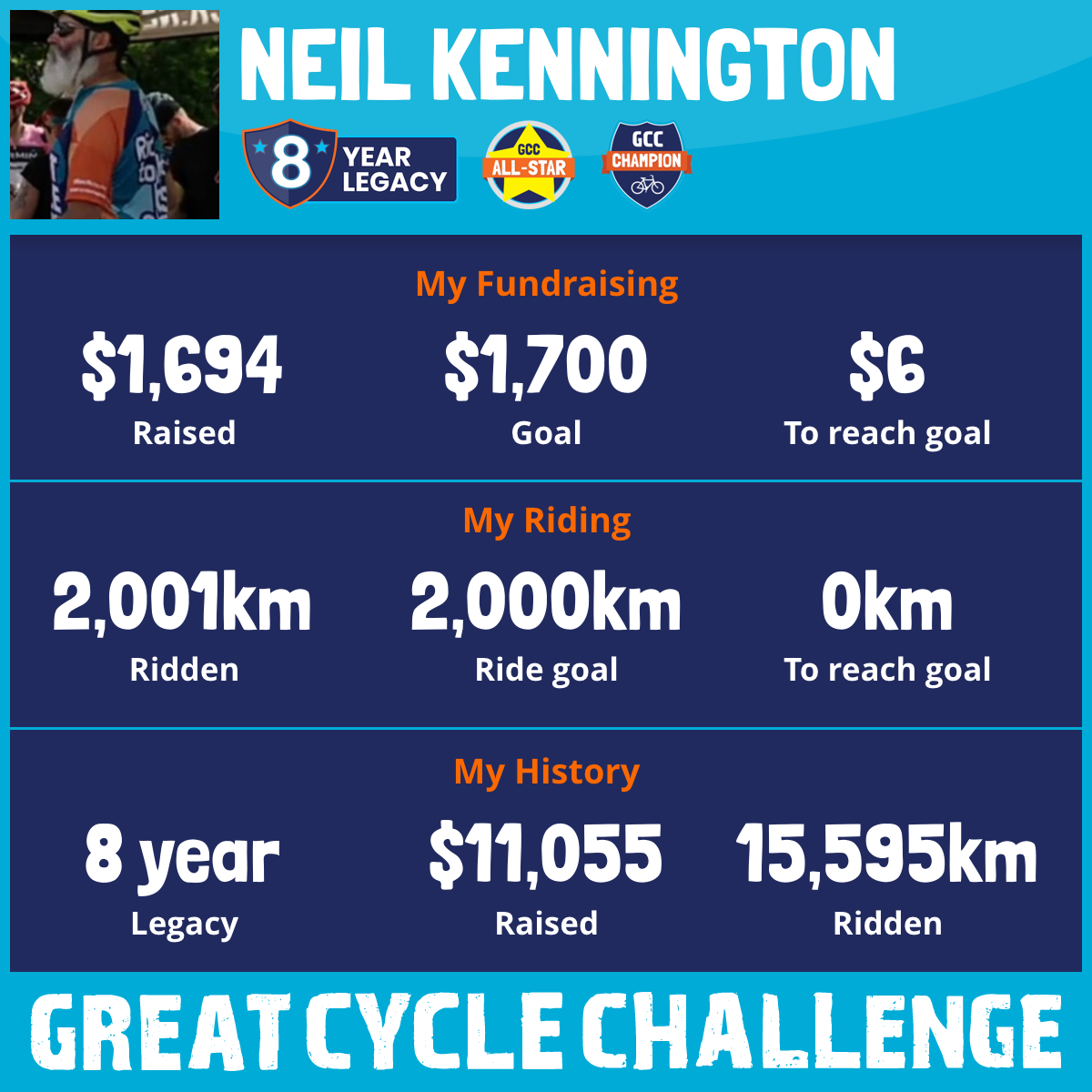 2,001 km Ridden$1,694 Raised2025