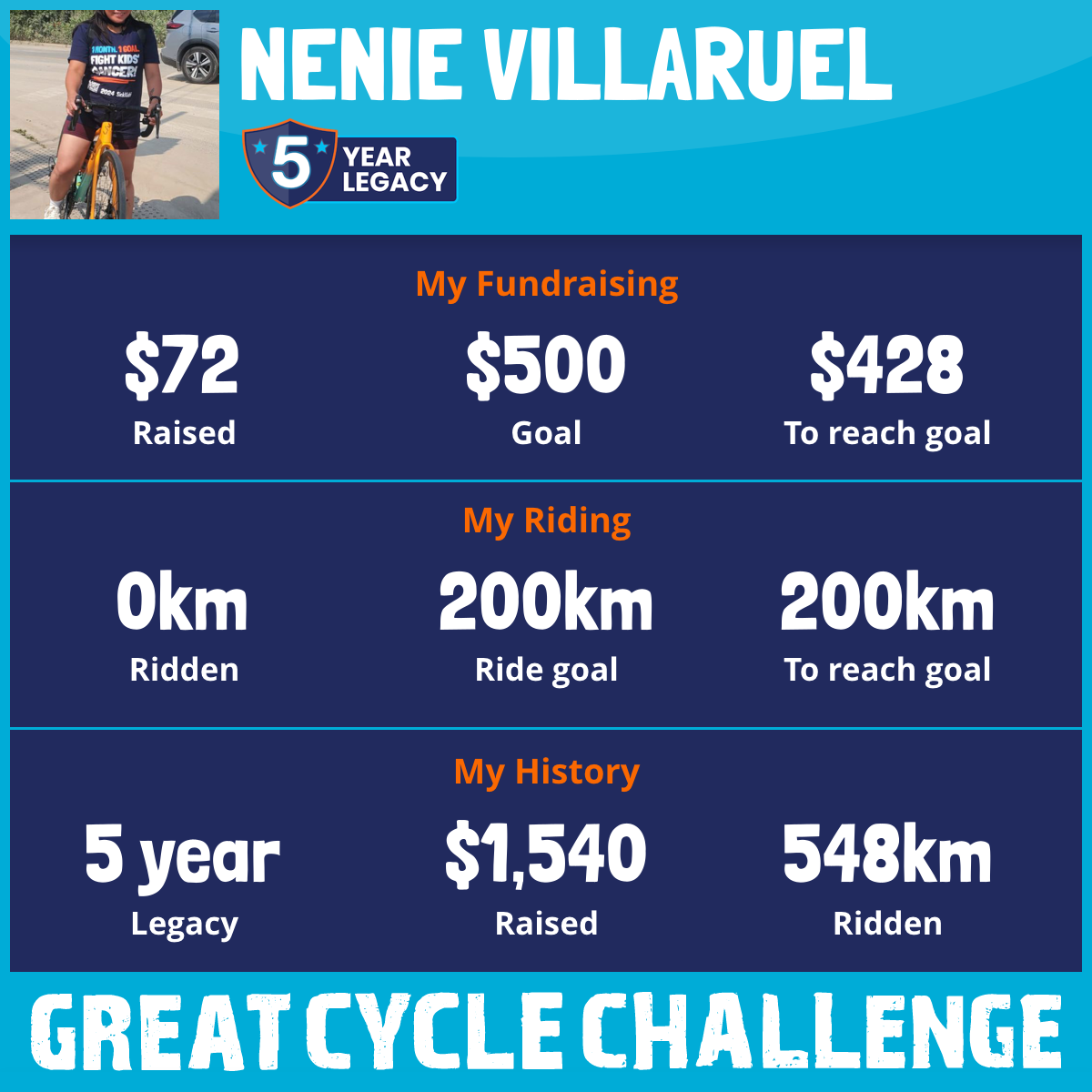 This August, I am taking part in the Great Cycle Challenge to fight kids' cancer!