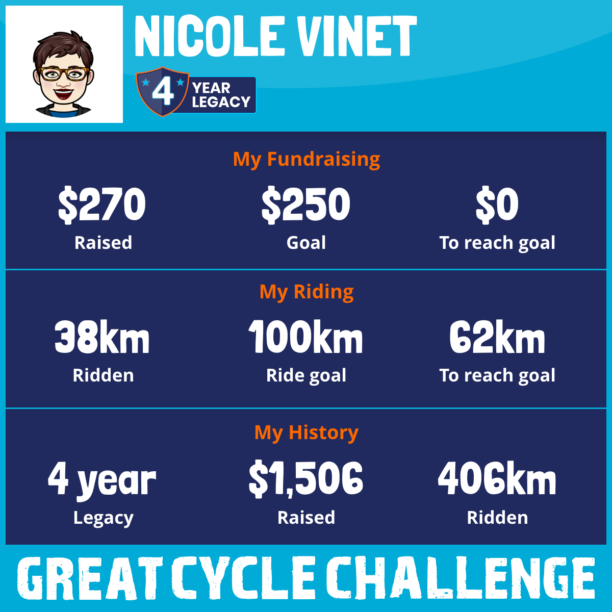 38 km Ridden$270 Raised2025