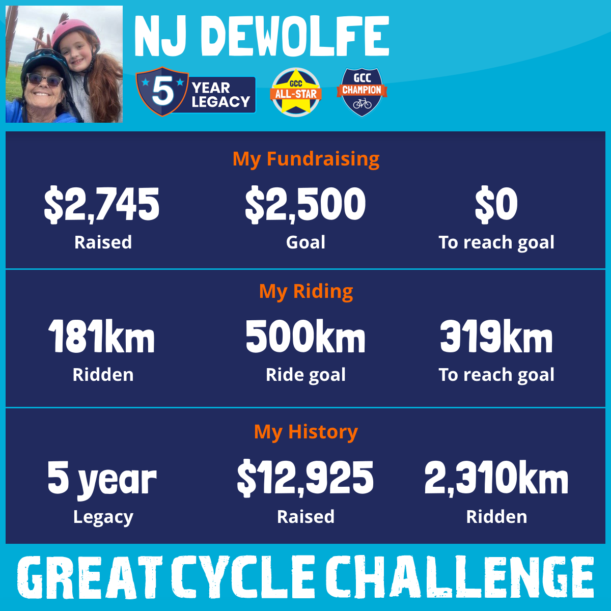 316 km Ridden$2,745 Raised2025