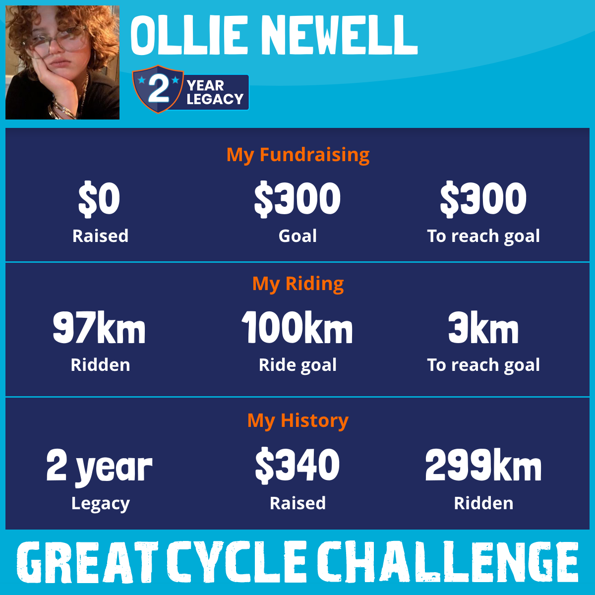 Hi! My name is Ollie, and I like biking. I think that this biking challenge is good for many reasons. It creates a reason to bike AND helps beat cancer!! :D