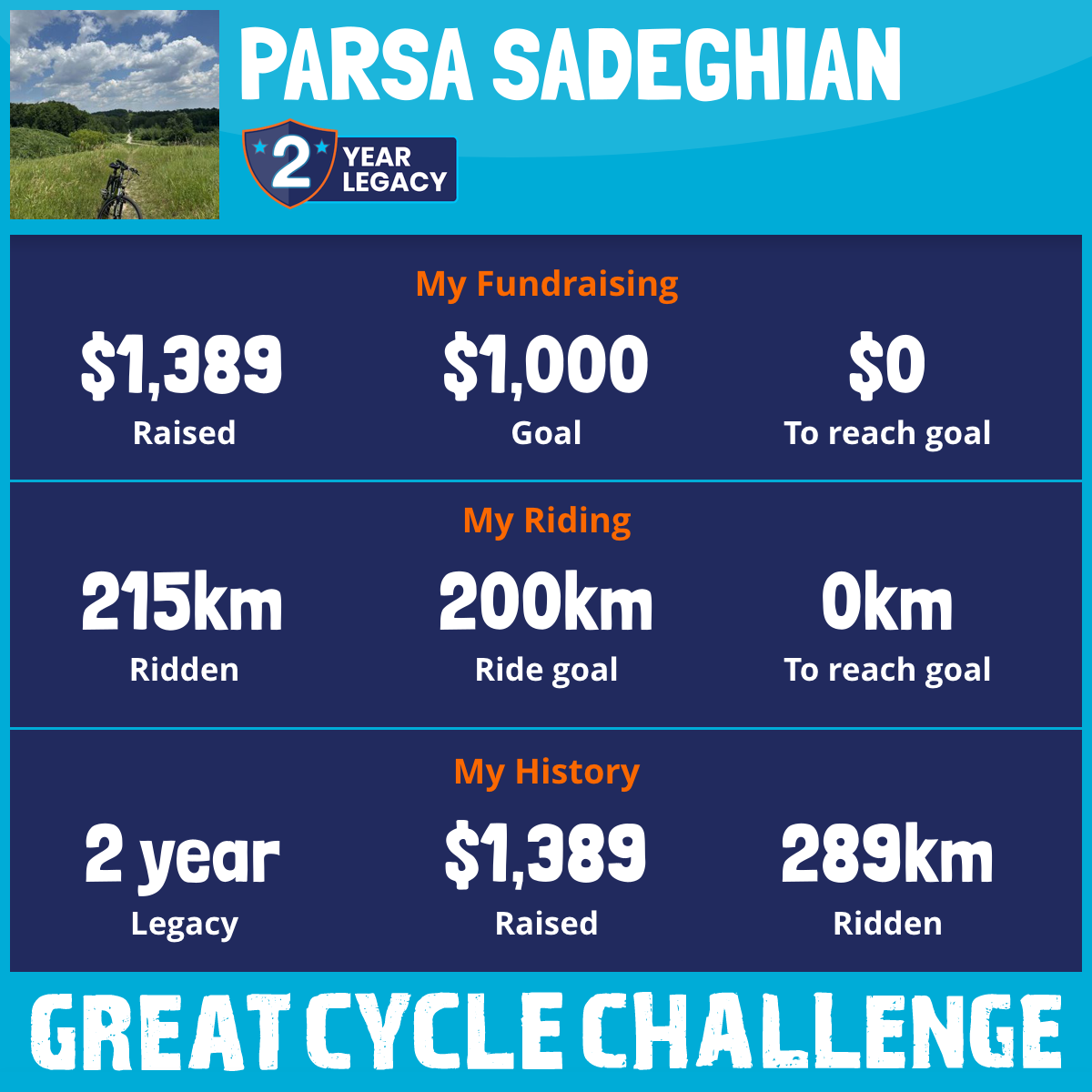 It is for this exact reason that I have decided to take part in the Great Cycle Challenge. Biking has been one of my favourite summer activities for my entire life, and I have spent countless kilometres on my bike over the years. This year, I hope to be able to use some of those kilometres to raise money for a cause that is important to me and many others.