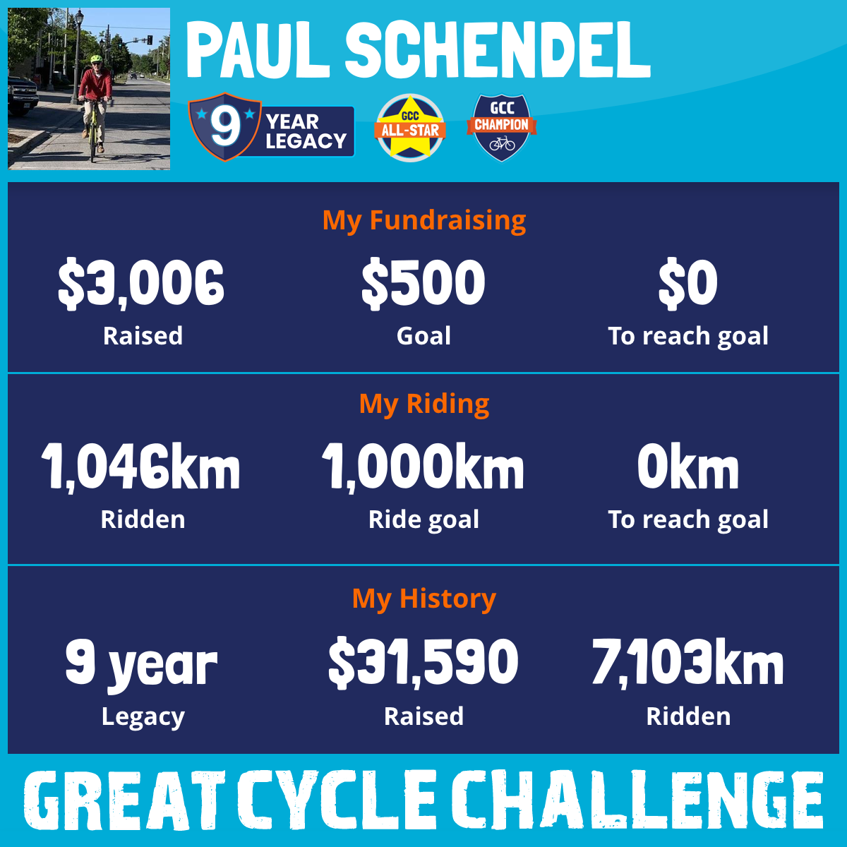 1,690 km Ridden$3,006 Raised2025