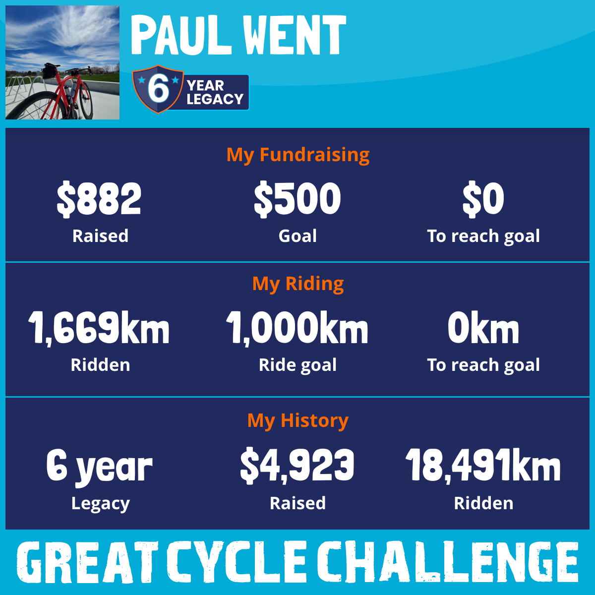 In August 2025, I am again taking part in the Great Cycle Challenge to fight kids' cancer!