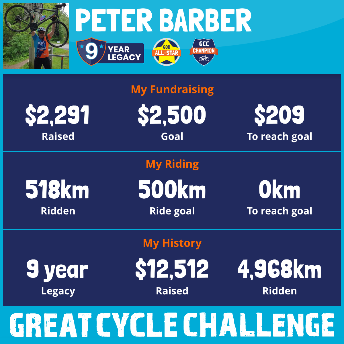 437 km Ridden$100 Raised2018