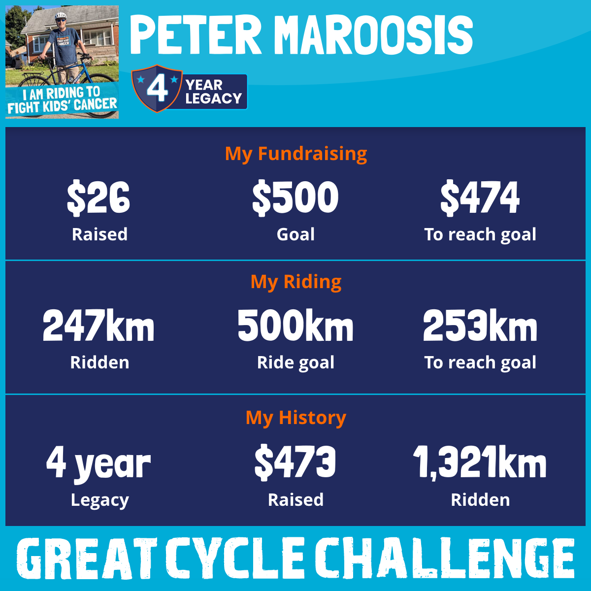 This August, I am taking part in the Great Cycle Challenge to fight kids' cancer!