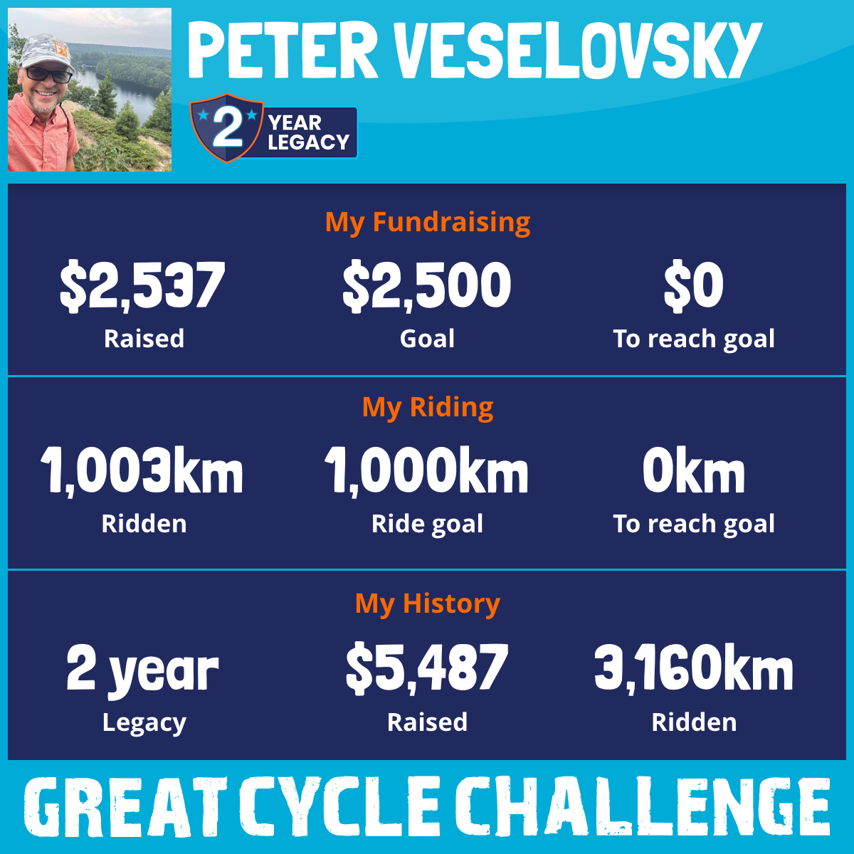 1,722 km Ridden$2,587 Raised2025