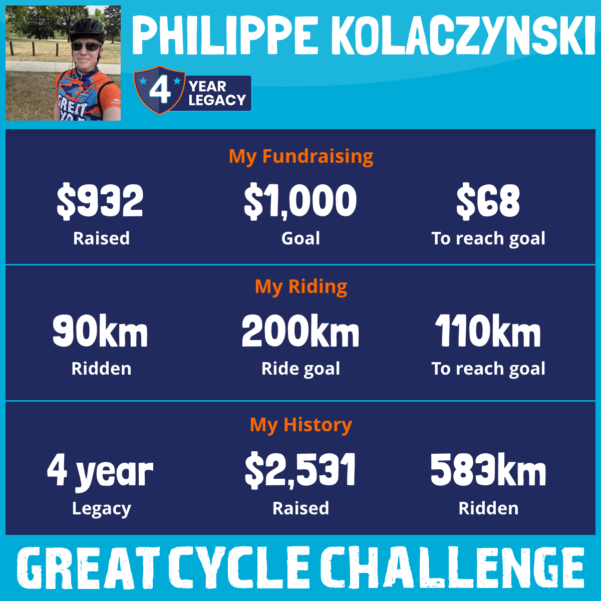 204 km Ridden$984 Raised2021