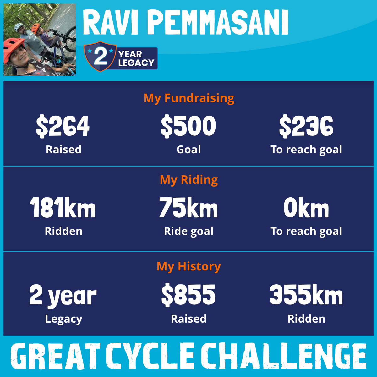 191 km Ridden$264 Raised2025