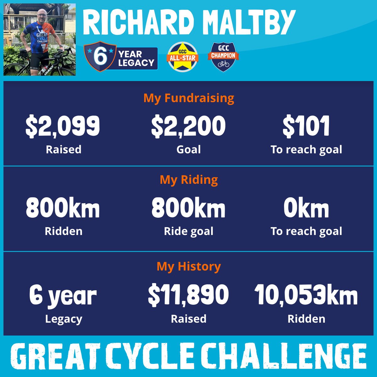 1,200 km Ridden$2,021 Raised2022