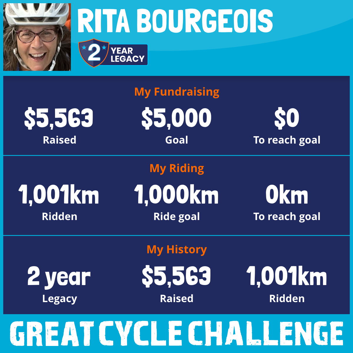 1,001 km Ridden$5,563 Raised2025