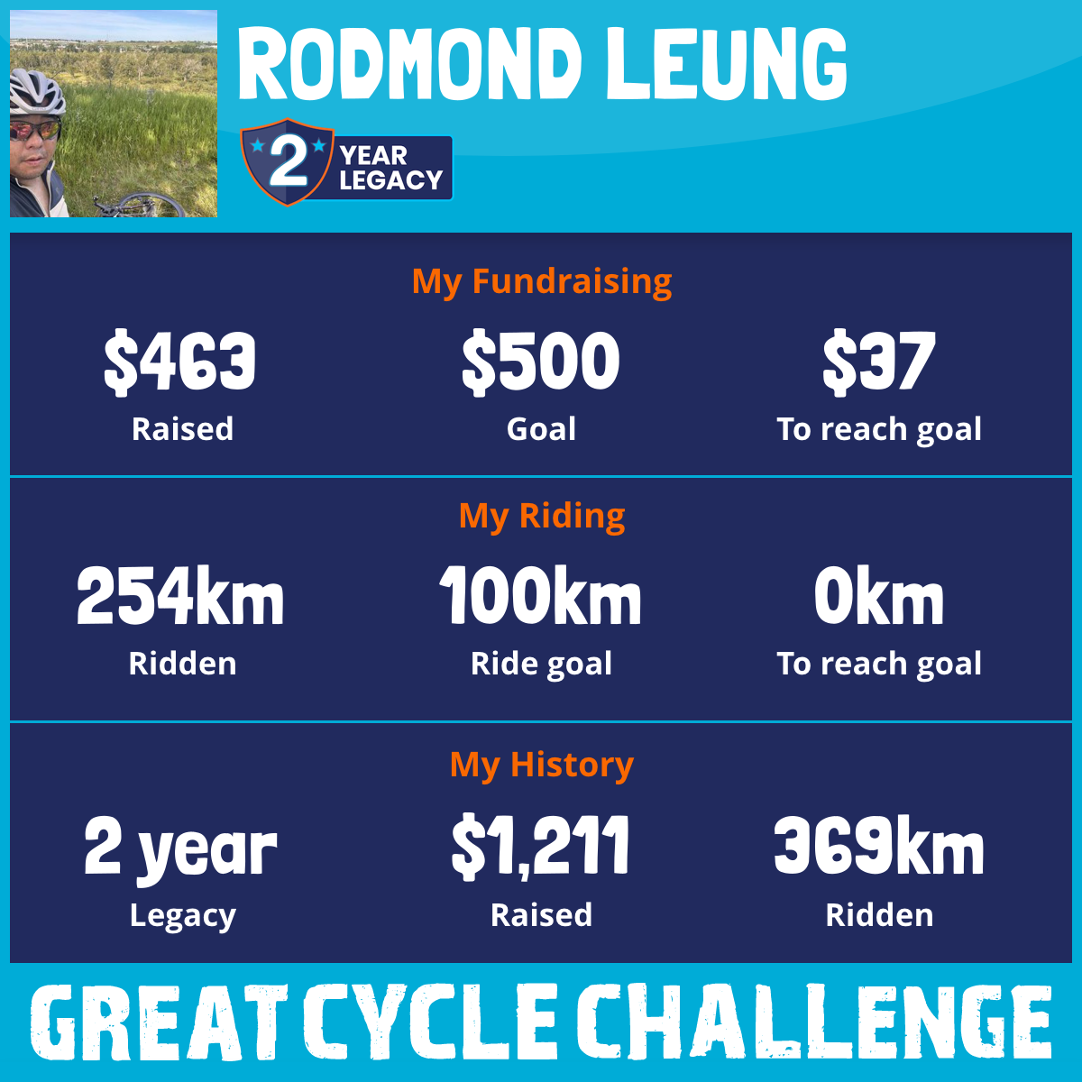 254 km Ridden$463 Raised2025