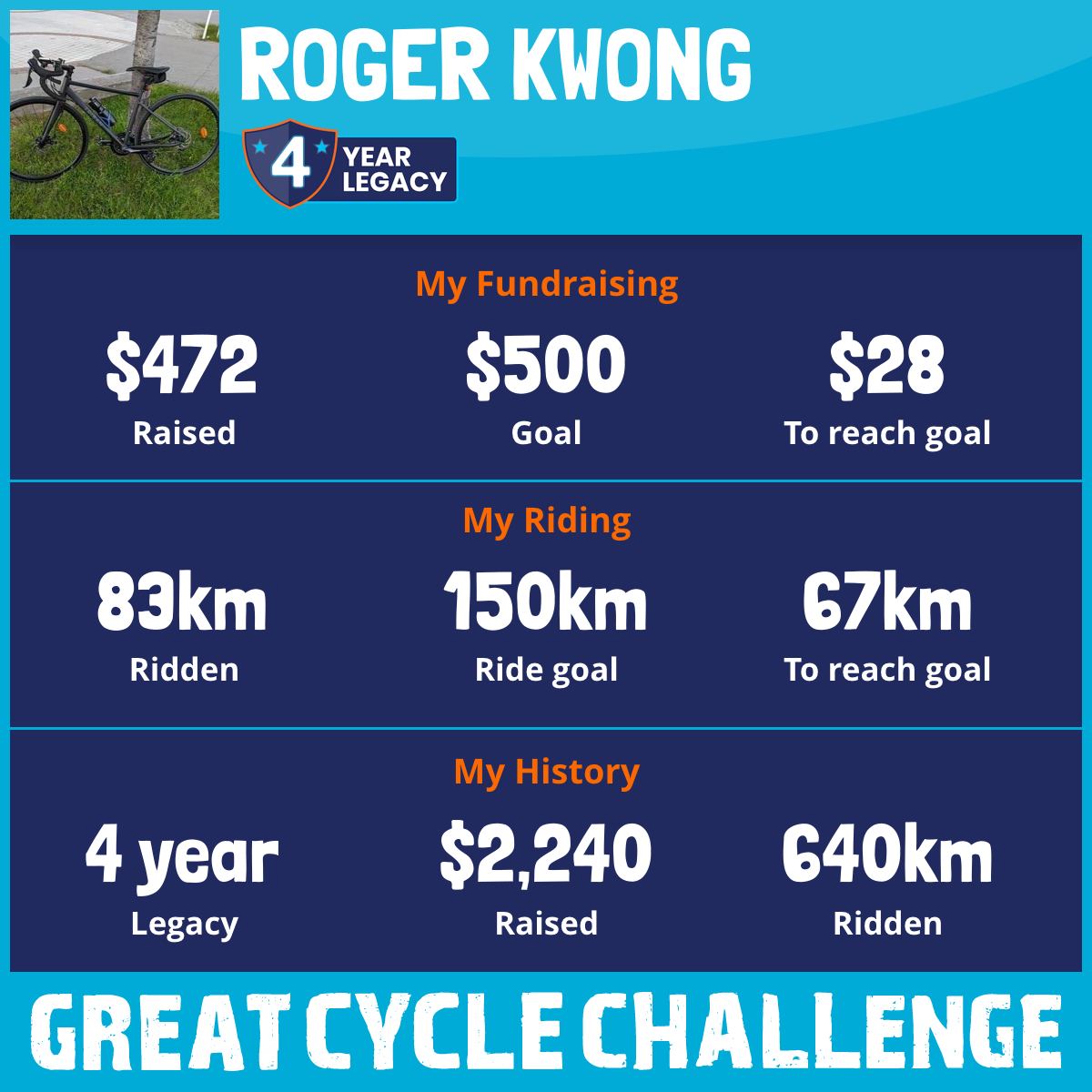 83 km Ridden$472 Raised2025