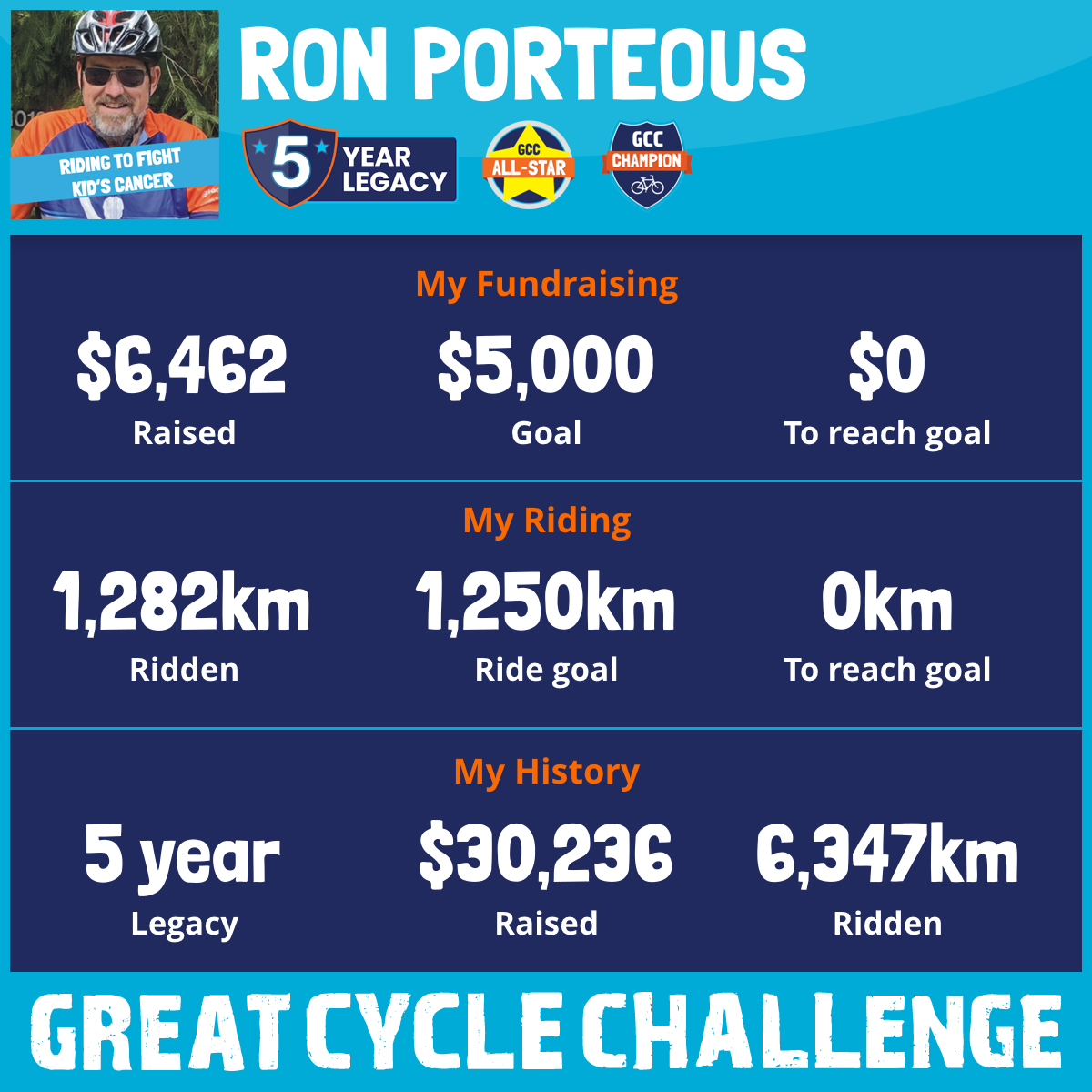 For the past five years, I have ridden in The Great Cycle Challenge which raises money for The Sick Kids Foundation and specifically to raise money to fight cancer in kids. In all of these years, my supporters have exceeded my expectations and have made this challenge so meaningful to me. Not only do I get to do something that I love but I get to do good for others while doing it. So far from 2021 through 2025, my supporters have donated $30,311 and I have ridden a total of 6414km during each August. I am keeping the same goals for 2026 which are, riding 1250km and collecting $5000 in donations. It's not easy, but I know you are all with me.