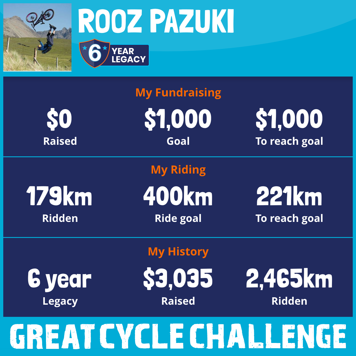 I am riding 400 km in memory of my mum, Roya Pazuki. Please sponsor me and support my challenge to fight kids' cancer and save little lives.