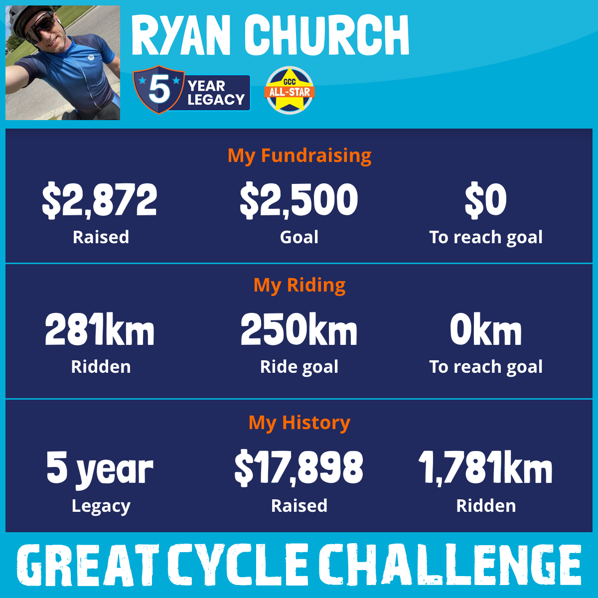 281 km Ridden$2,872 Raised2025