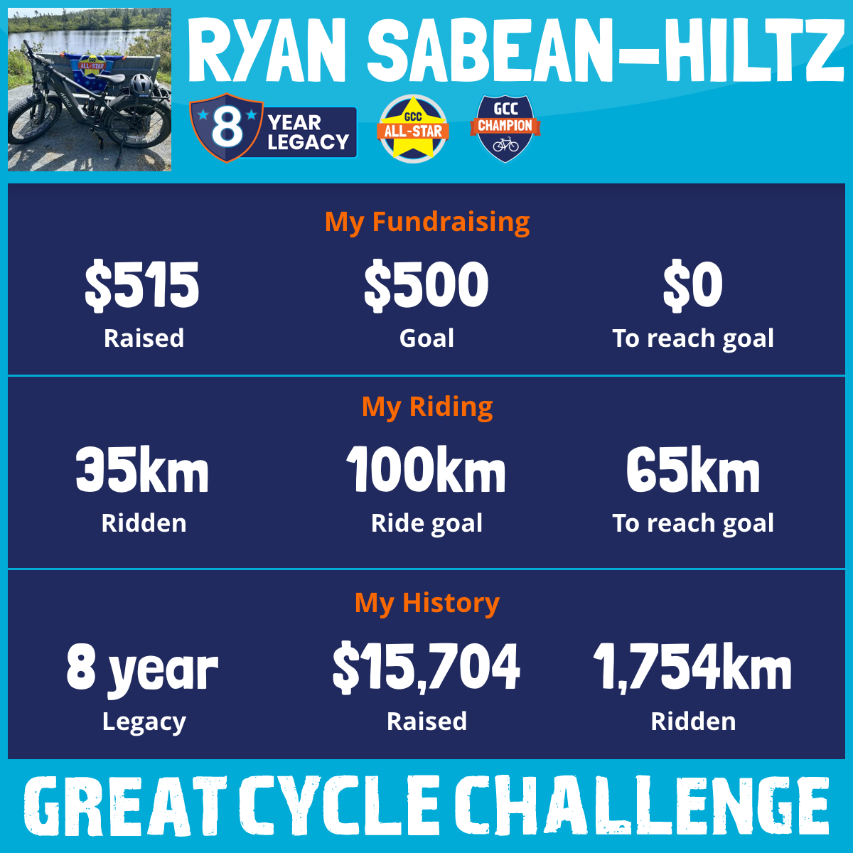 This August, I am taking part in the Great Cycle Challenge to fight kids' cancer! I have taken part in this challenge not for any one individual in my life but for all the children who have suffered this horrible disease. I feel a need to raise funds no matter the amount to help support the families going through the battle. With children now of my own, I feel the responsibility to show my children that empathy for the battle others are having is important.