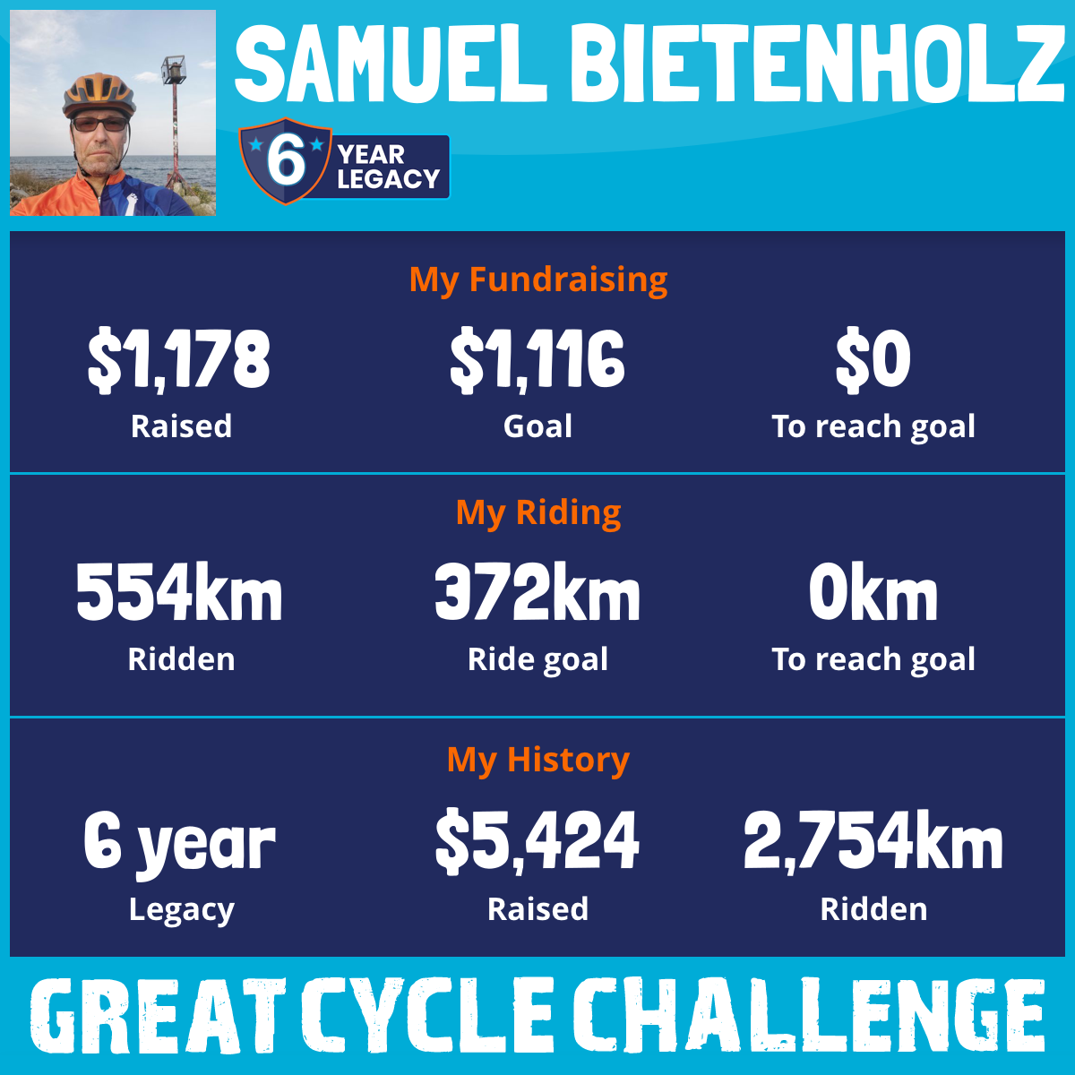 It is August and another year for the Great Cycle Challenge to Fight Kids' Cancer! Please help me raise $744 by donating to my 372km challenge for 2025.