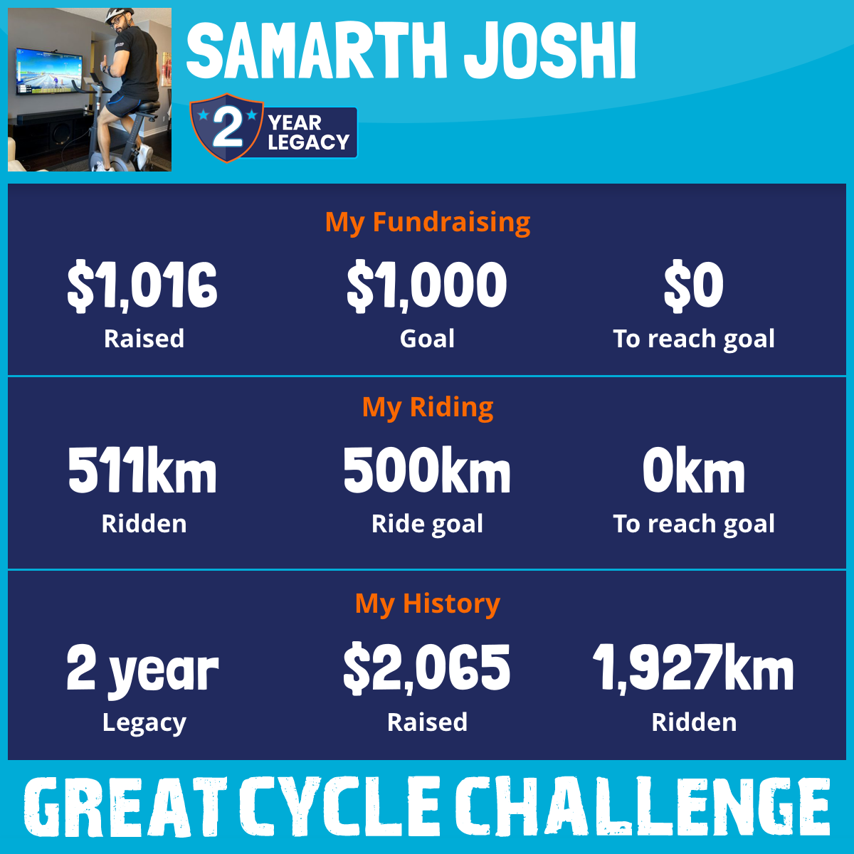 618 km Ridden$1,016 Raised2025