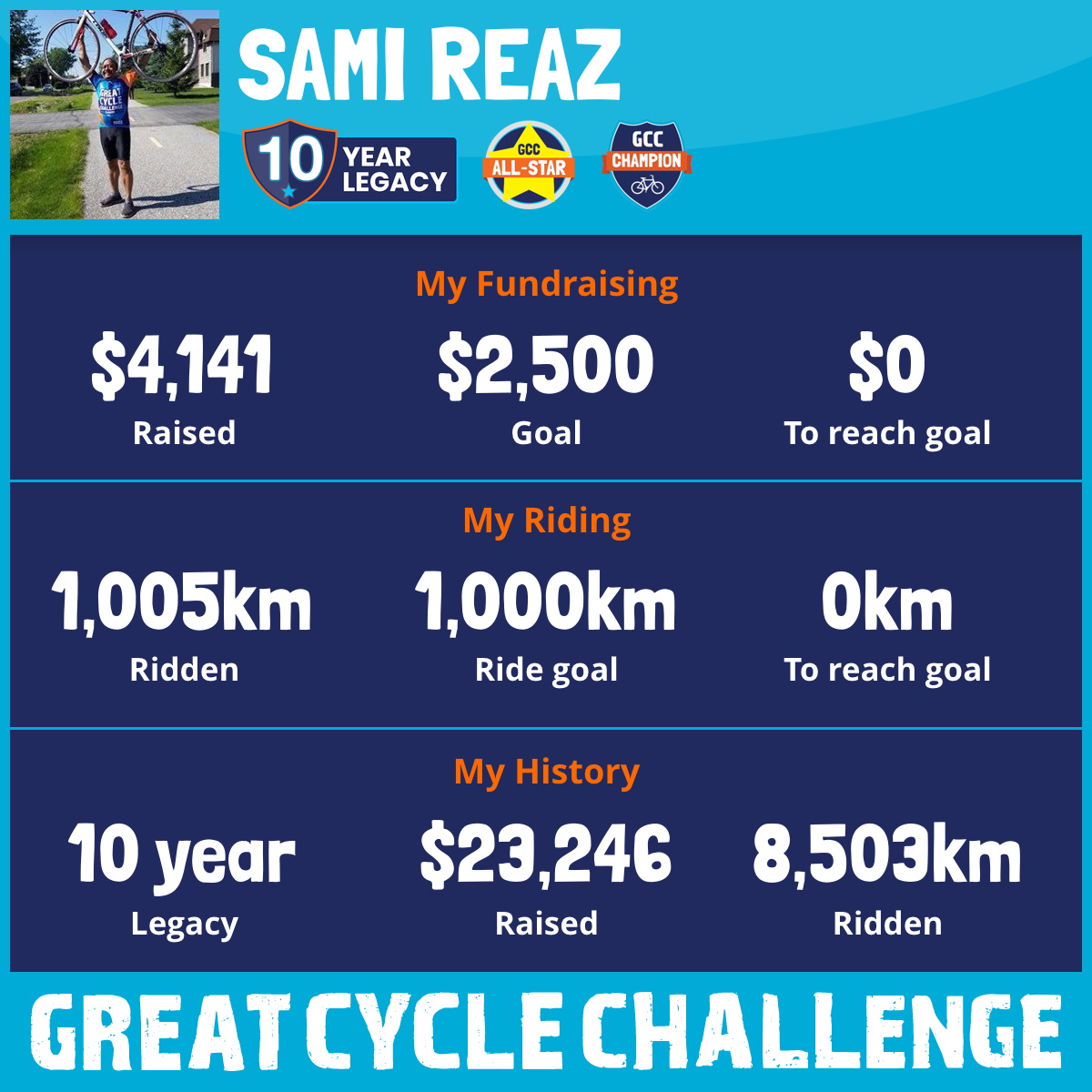 1,046 km Ridden$4,141 Raised2025