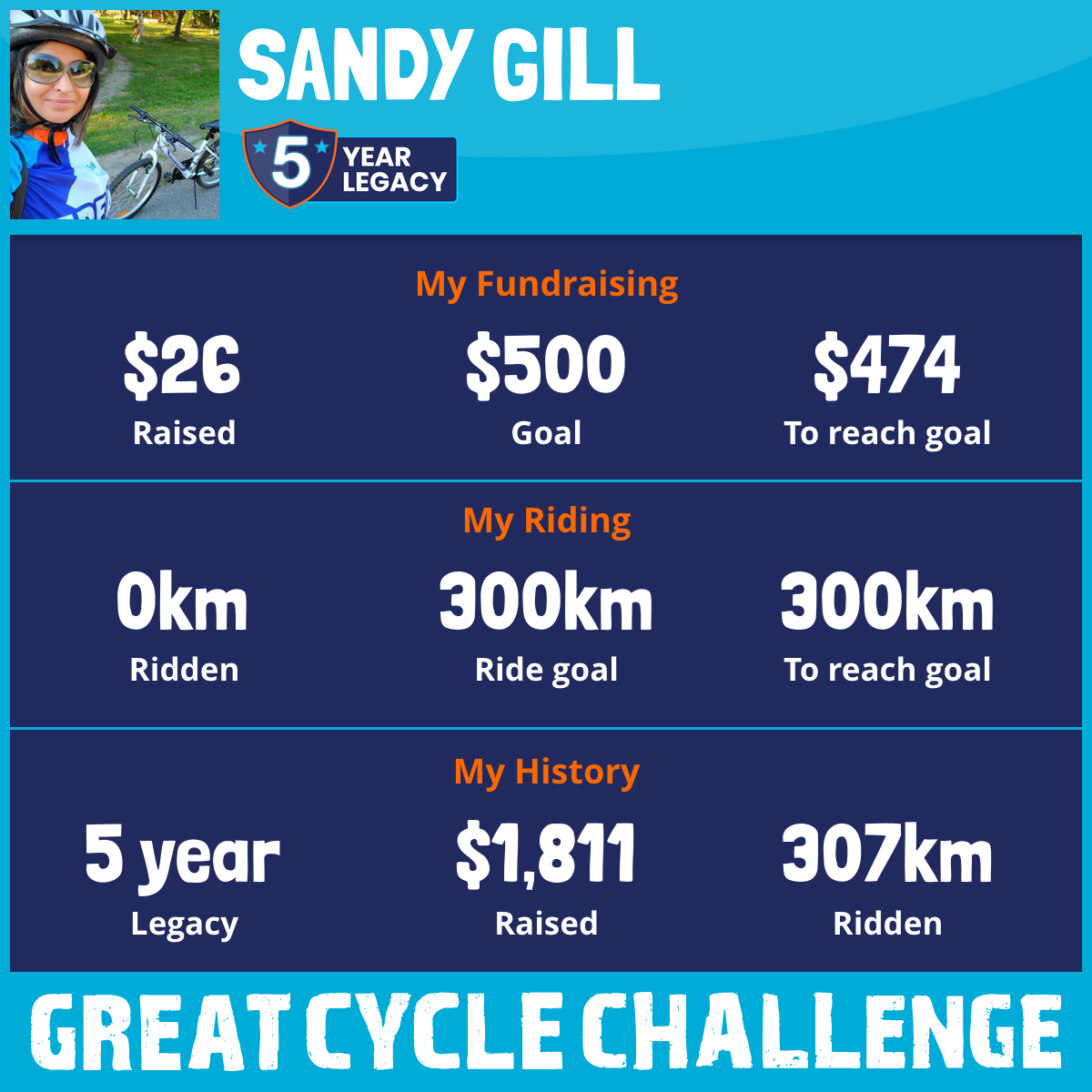 302 km Ridden$1,537 Raised2020