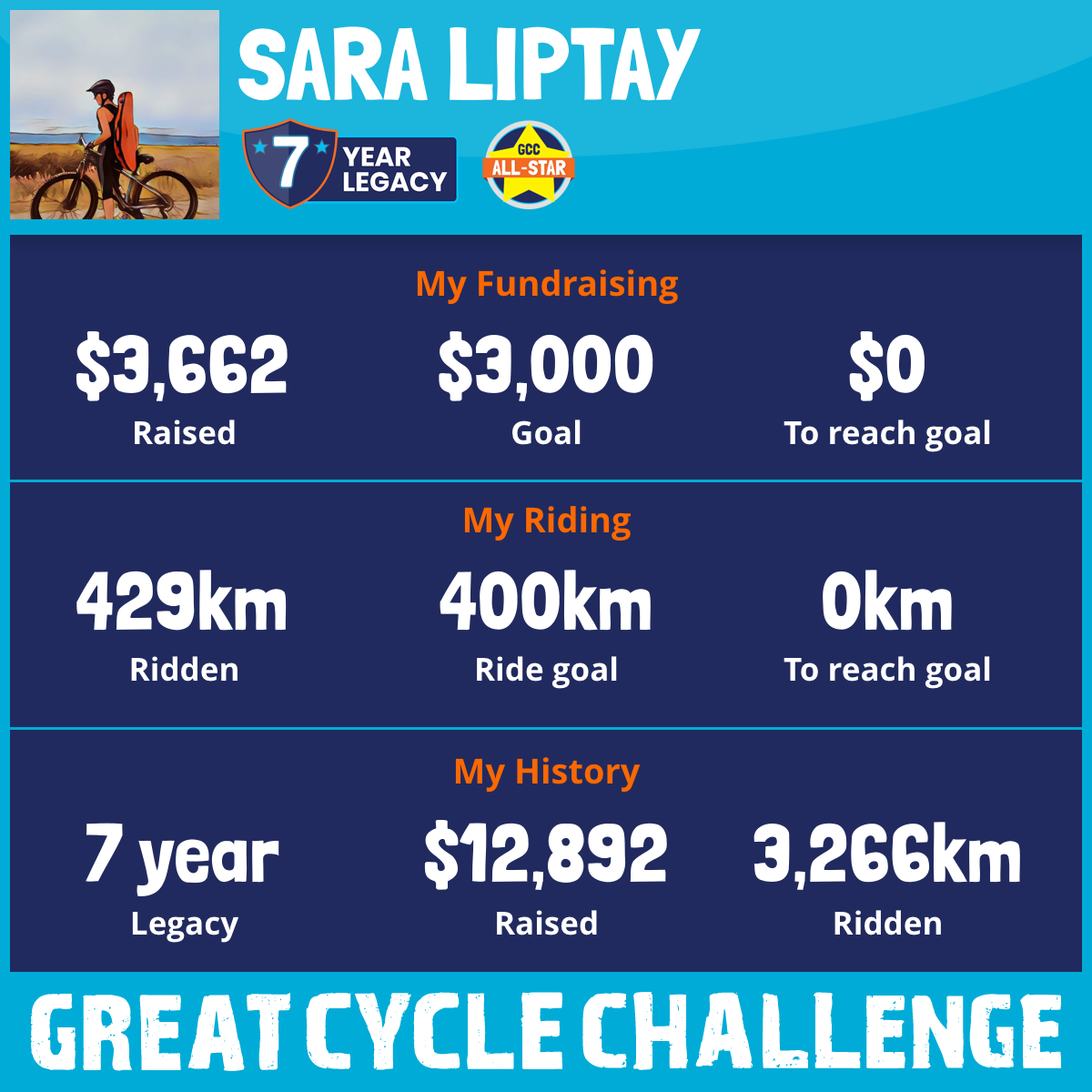 441 km Ridden$3,662 Raised2025