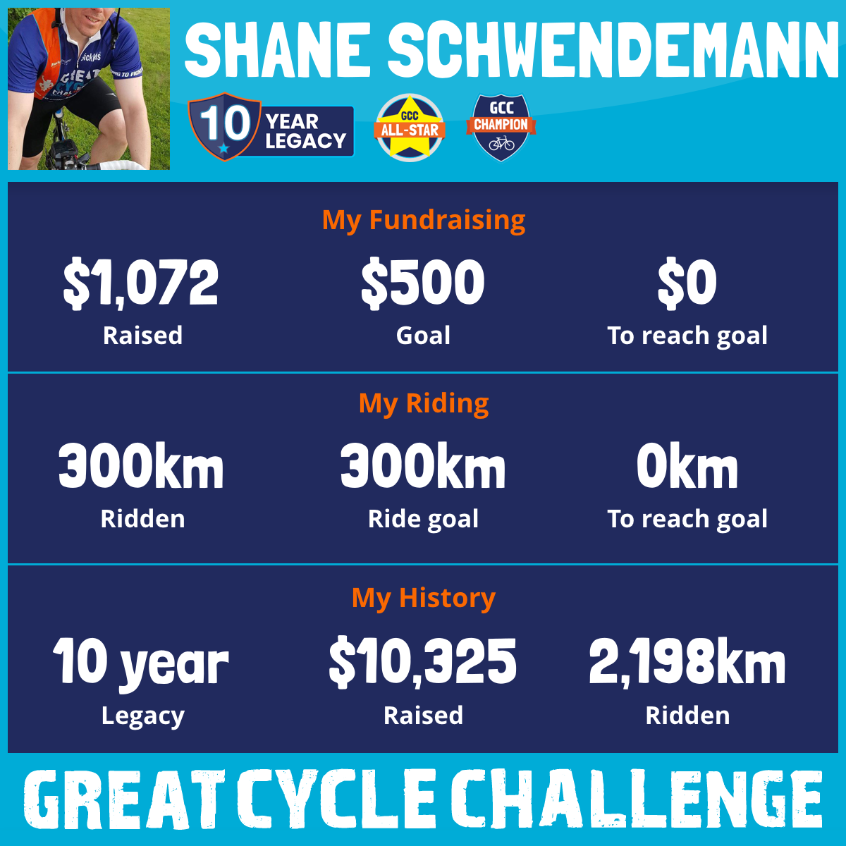 300 km Ridden$1,072 Raised2025