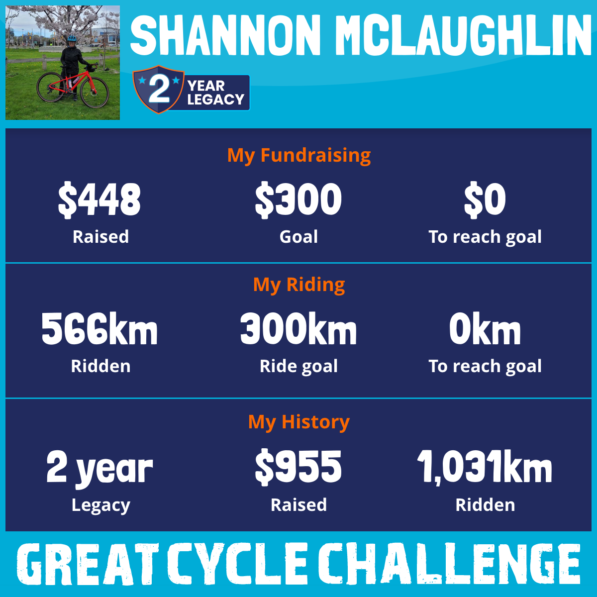 955 km Ridden$448 Raised2025