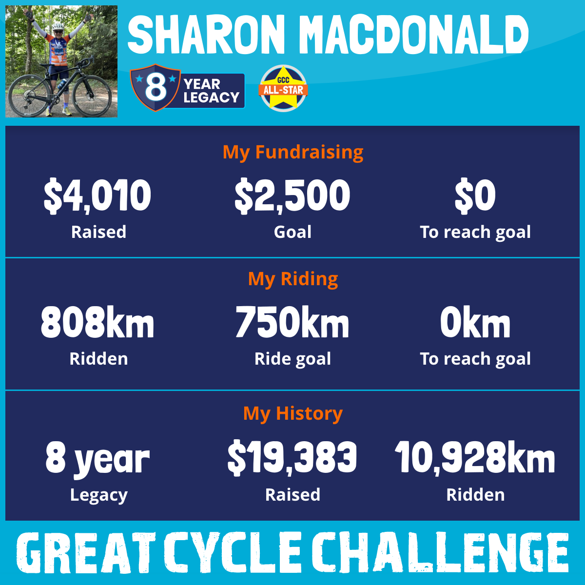 1,504 km Ridden$4,010 Raised2025
