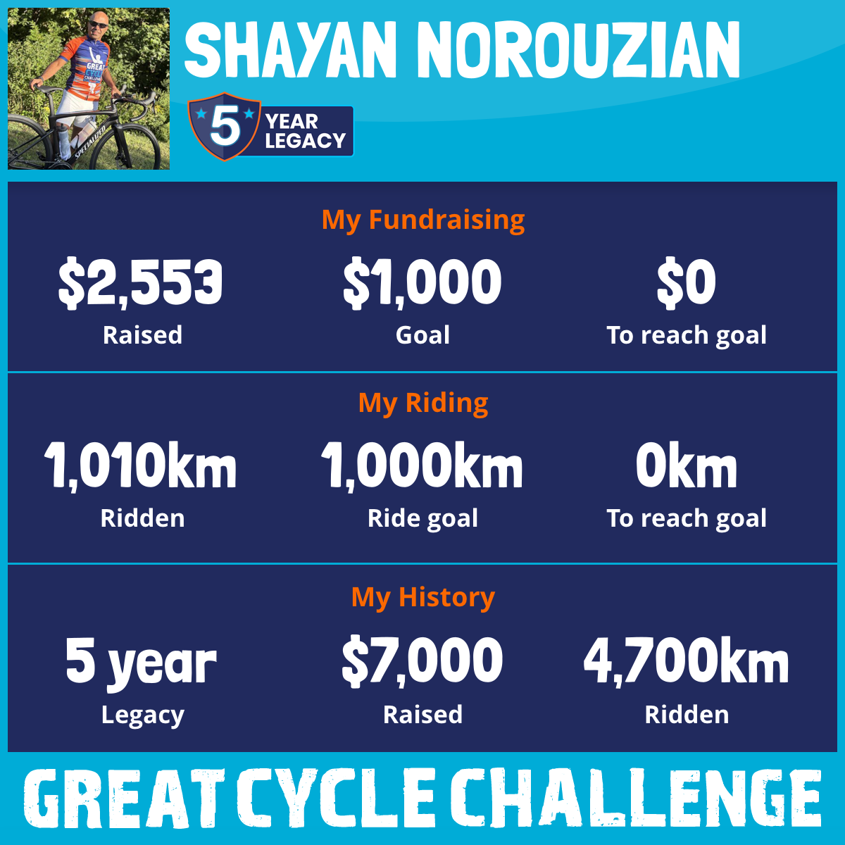 1,175 km Ridden$1,570 Raised2024