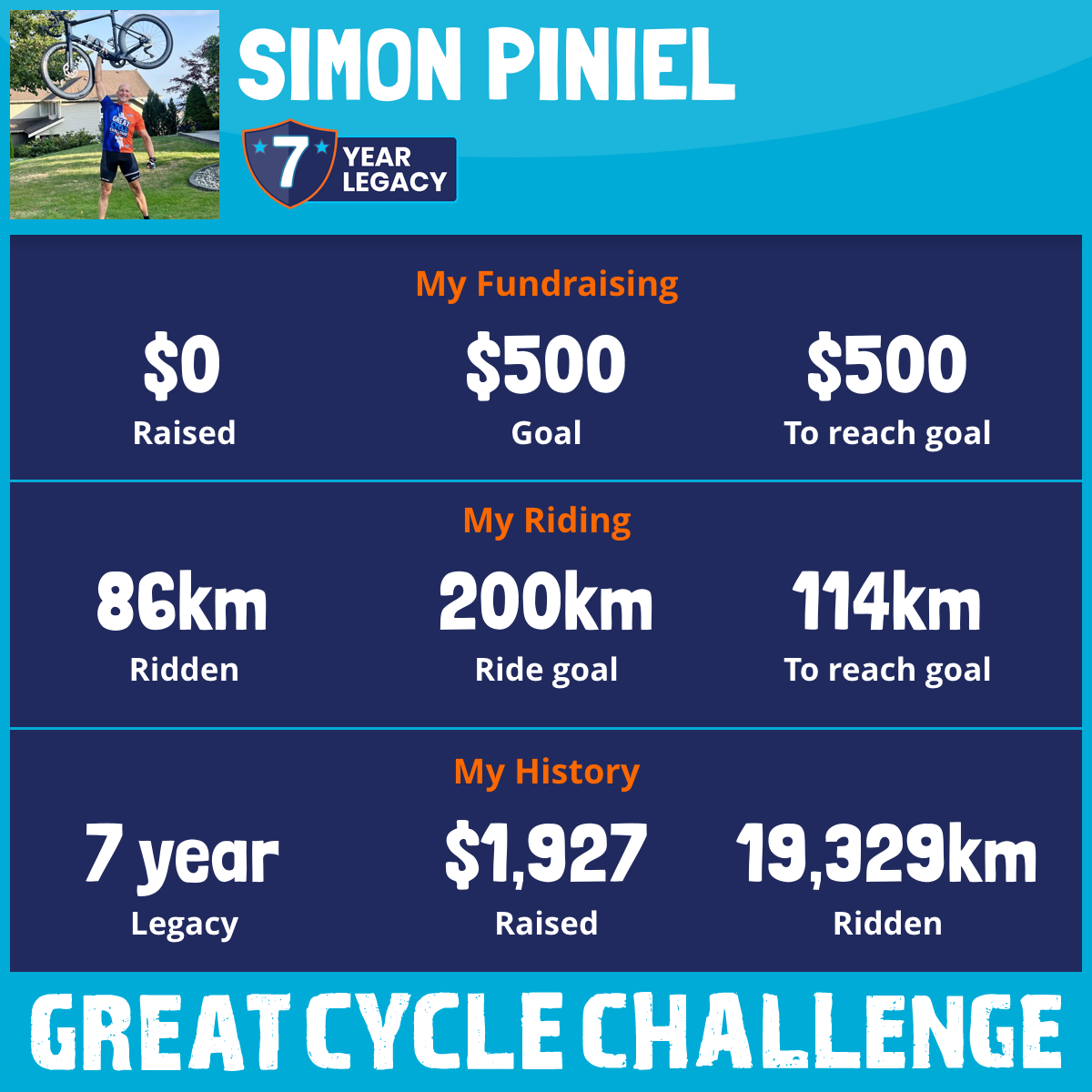 I'll ride 1,000km in August to raise $1,000, and it's my 6th year partaking.