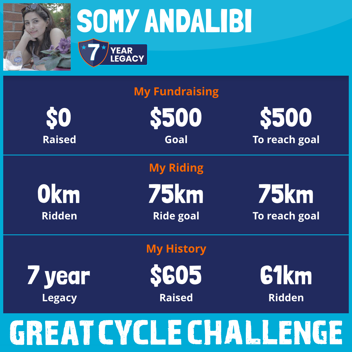 61 km Ridden$605 Raised2019