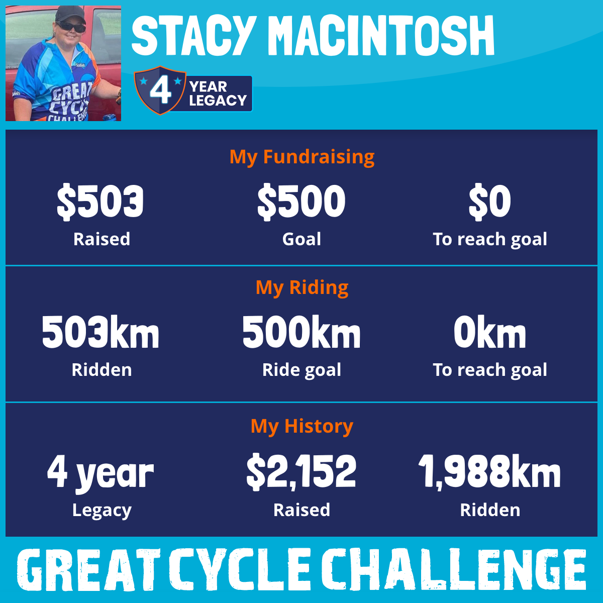 500 km Ridden$503 Raised2023