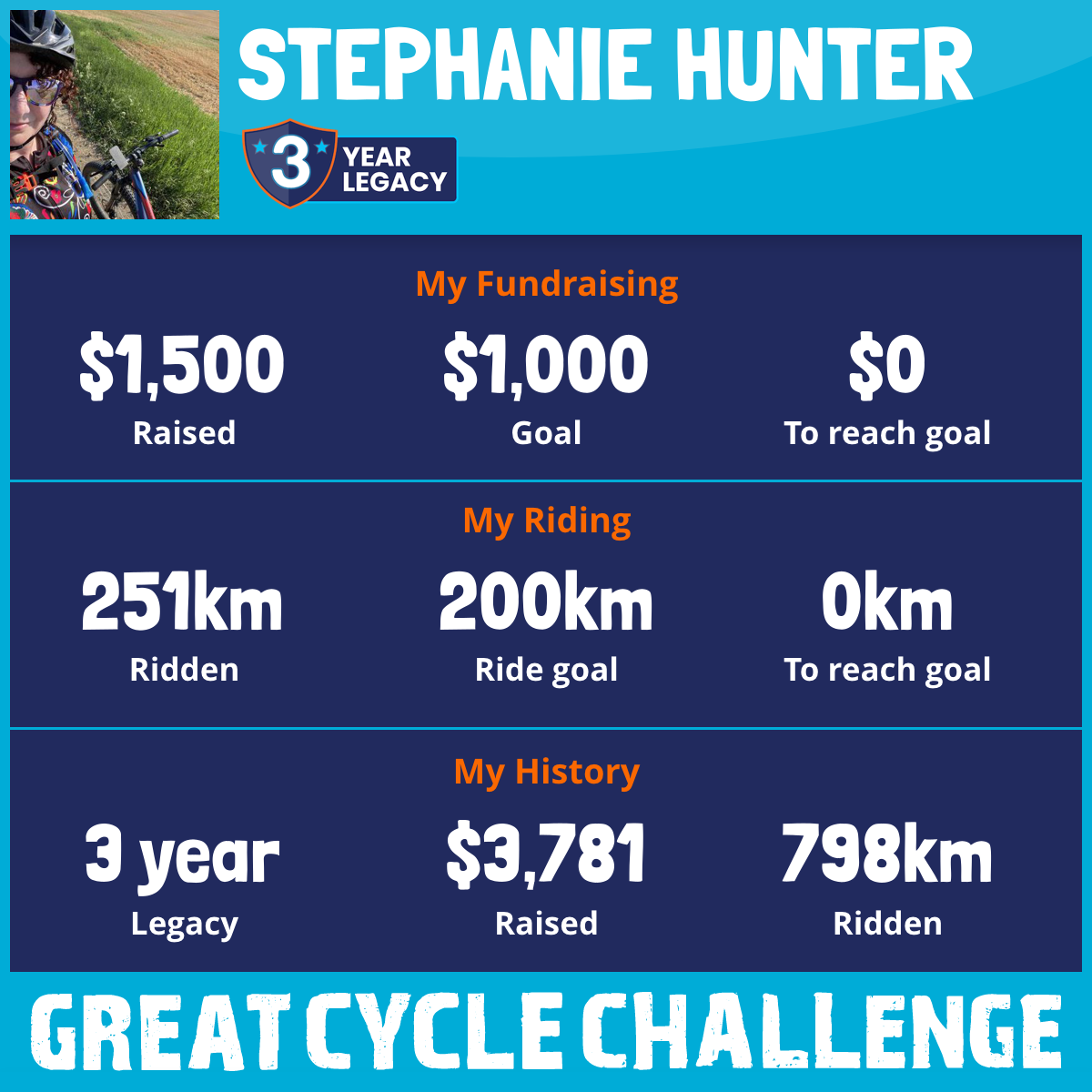 251 km Ridden$1,500 Raised2025