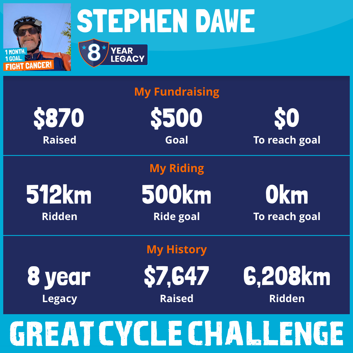 I am riding 500 km in memory of my mum, Pam Dawe. Please sponsor me and support my challenge to fight kids' cancer and save little lives.