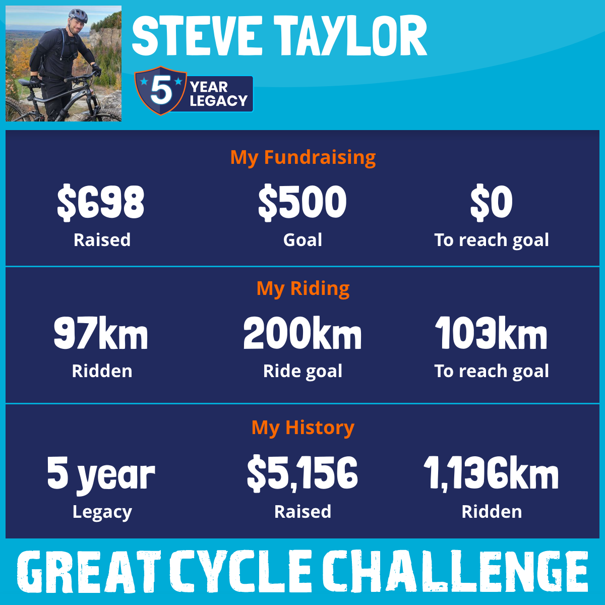 168 km Ridden$698 Raised2025