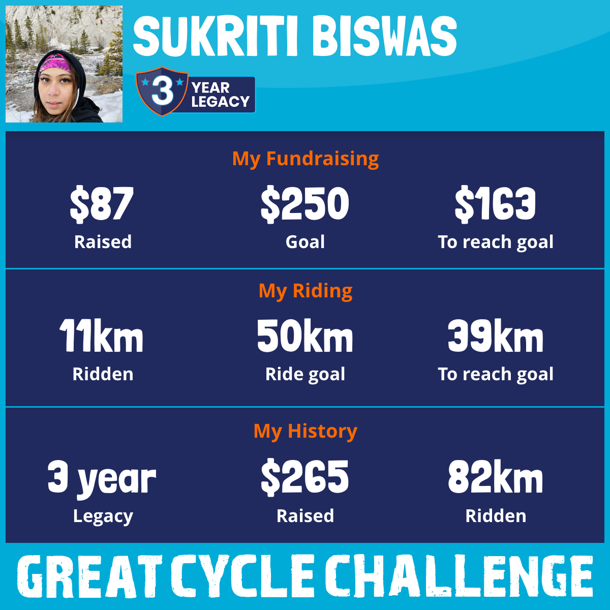 11 km Ridden$87 Raised2025