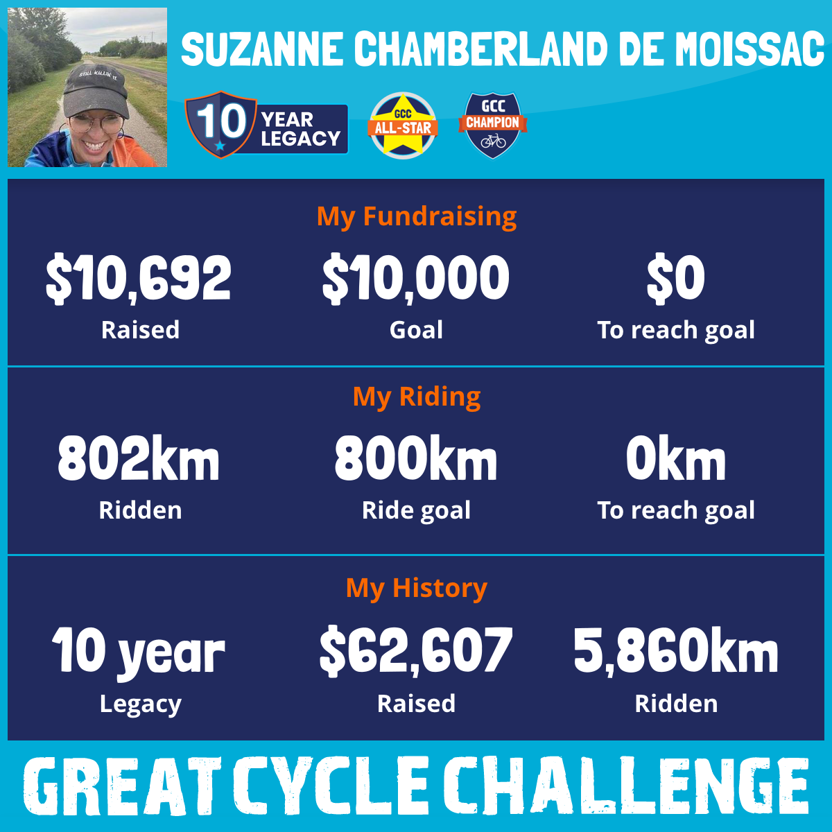 802 km Ridden$11,879 Raised2025