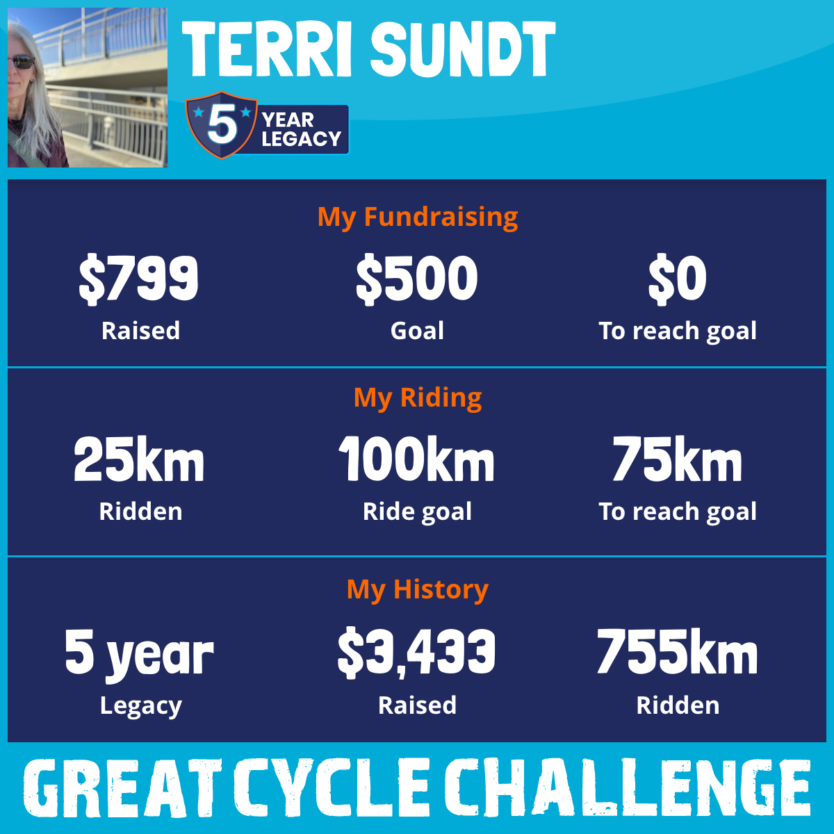 105 km Ridden$1,001 Raised2024