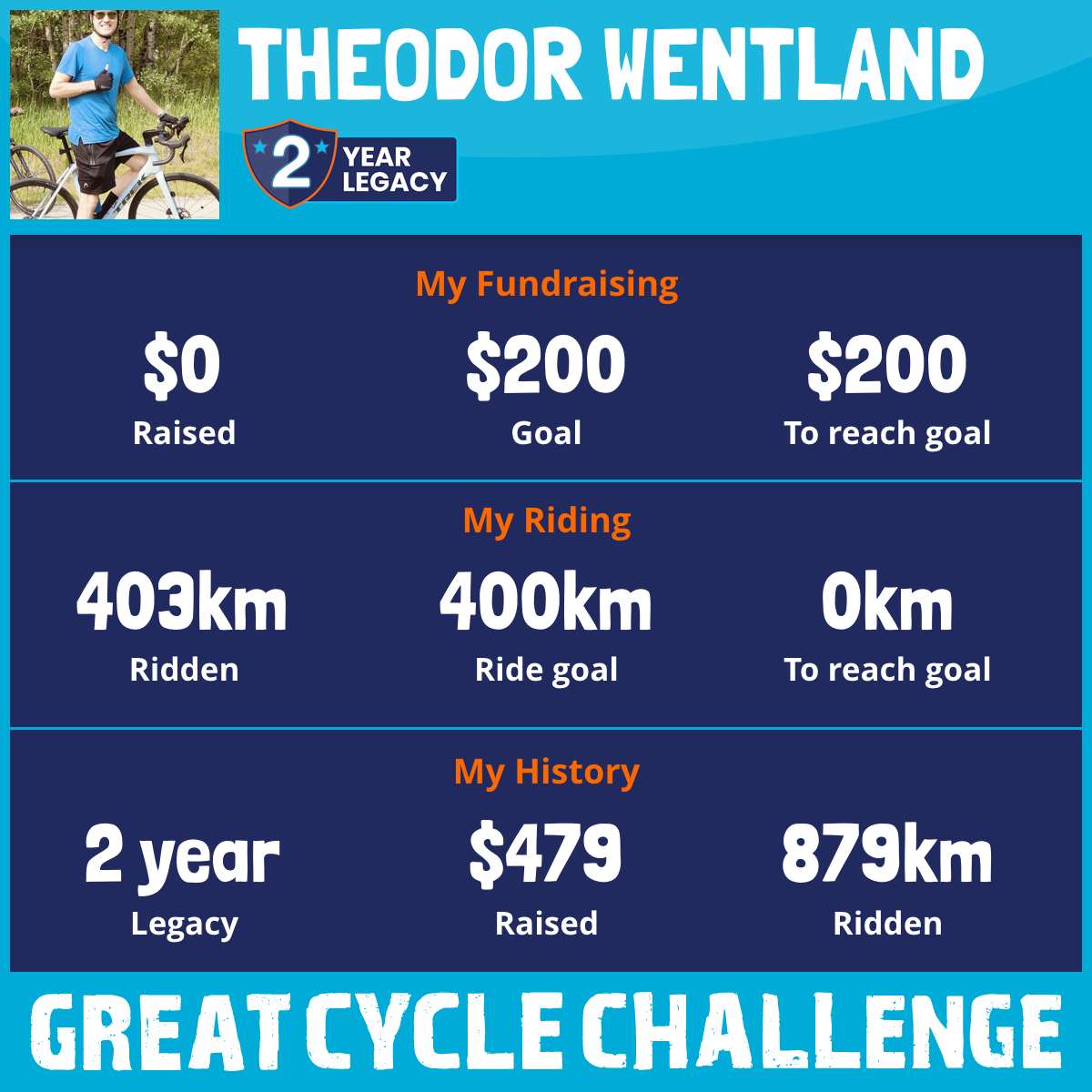I am riding 400 km for my brother, Ken. Please sponsor me and support my challenge to fight kids' cancer and save little lives.