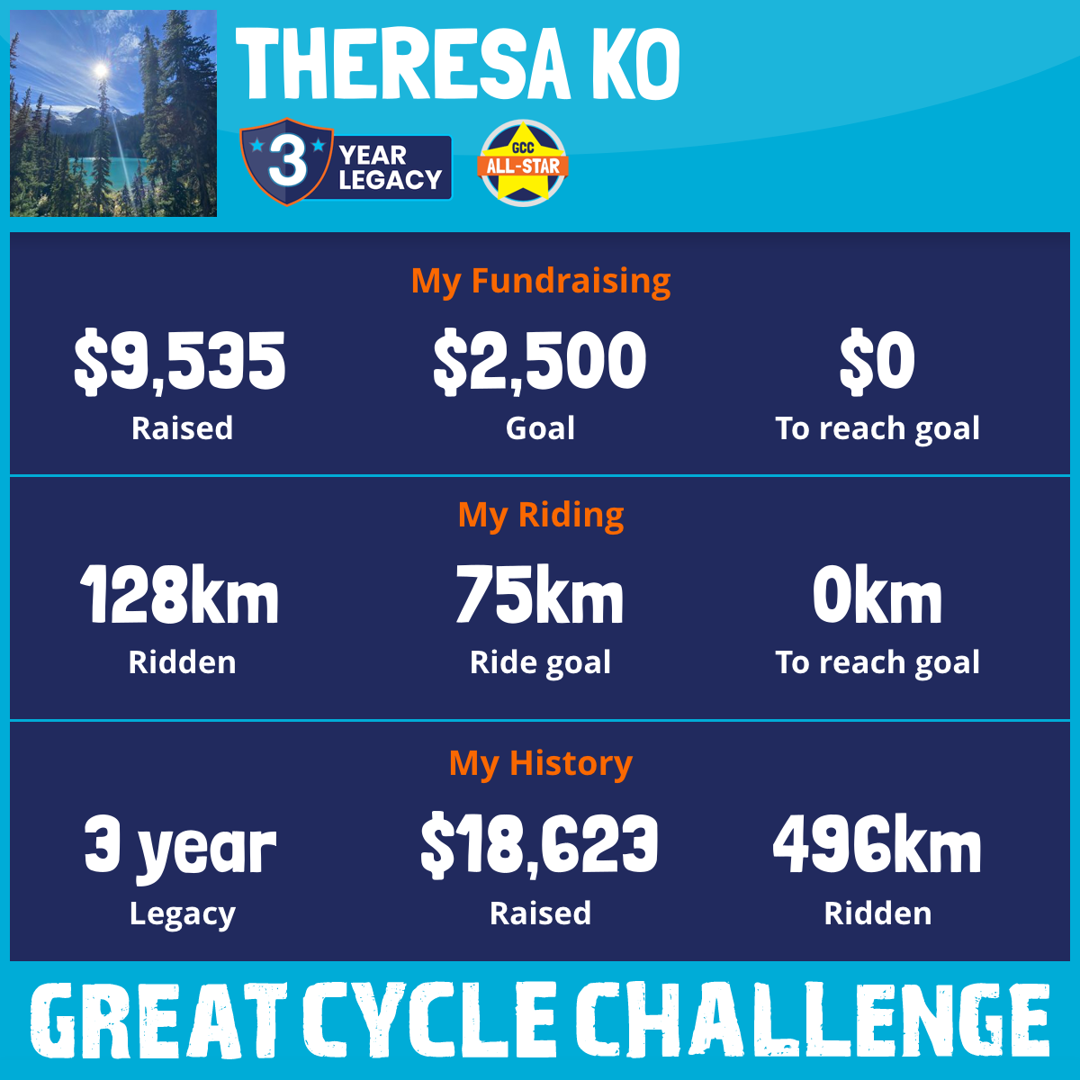 184 km Ridden$4,773 Raised2023