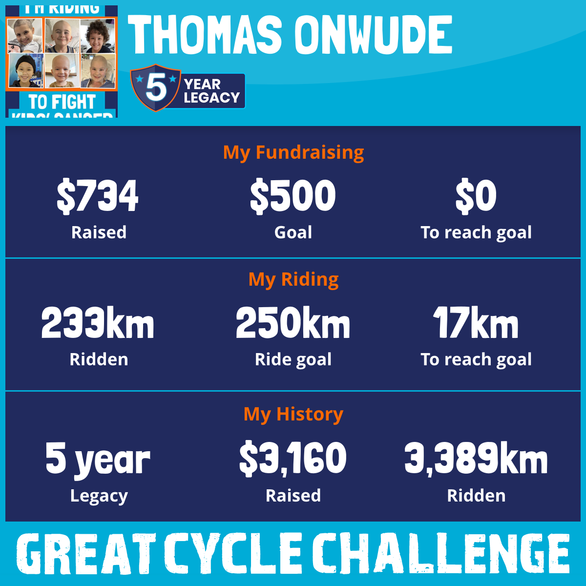 This August, I am taking part in the Great Cycle Challenge to fight kids' cancer!