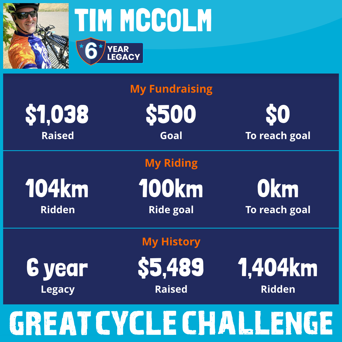 104 km Ridden$1,038 Raised2025