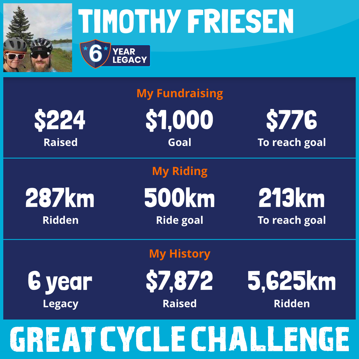 So, I am raising funds through the Great Cycle Challenge to help these kids, and support the SickKids Foundation to allow them to continue their work in developing treatments and finding a cure for childhood cancer.