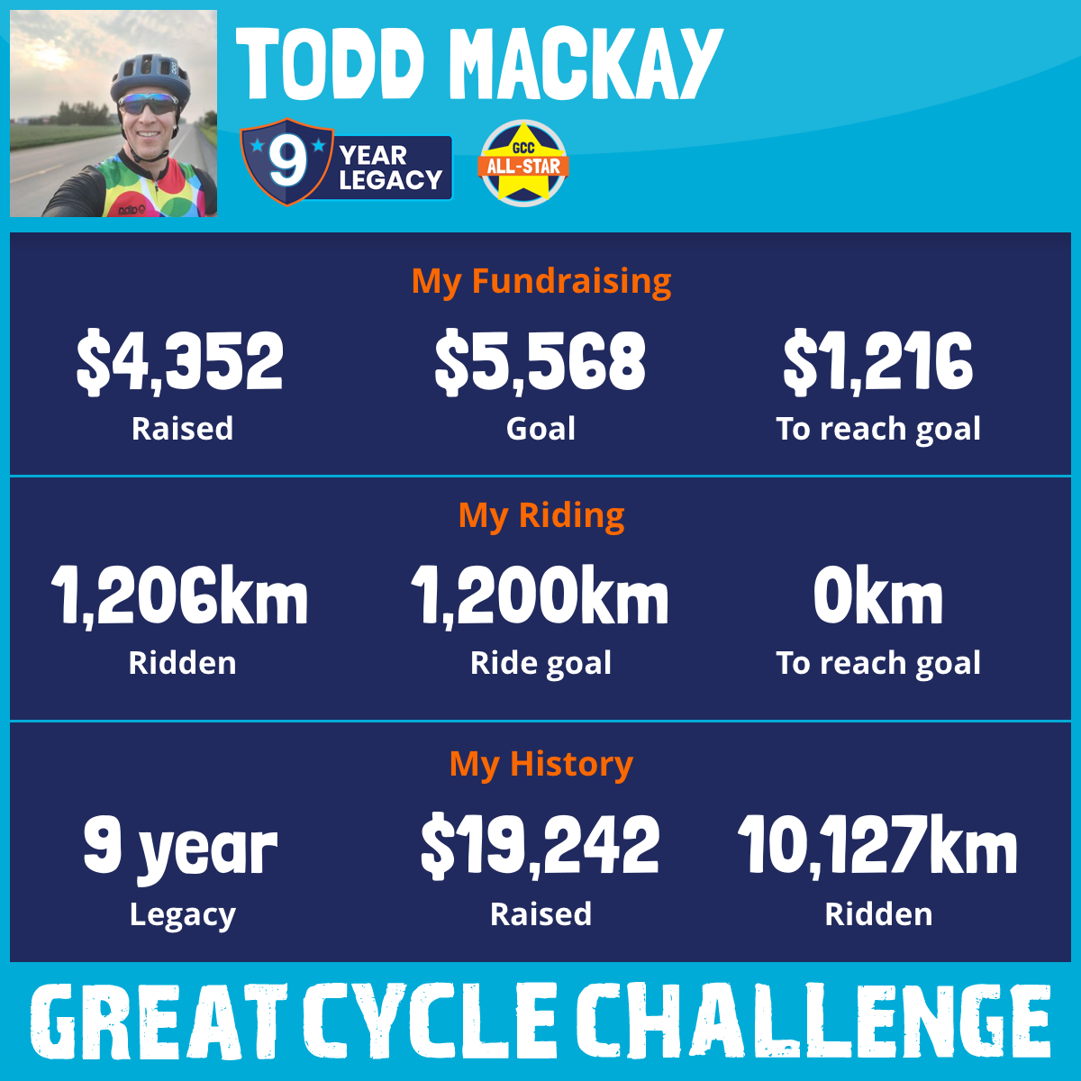 1,206 km Ridden$5,611 Raised2025