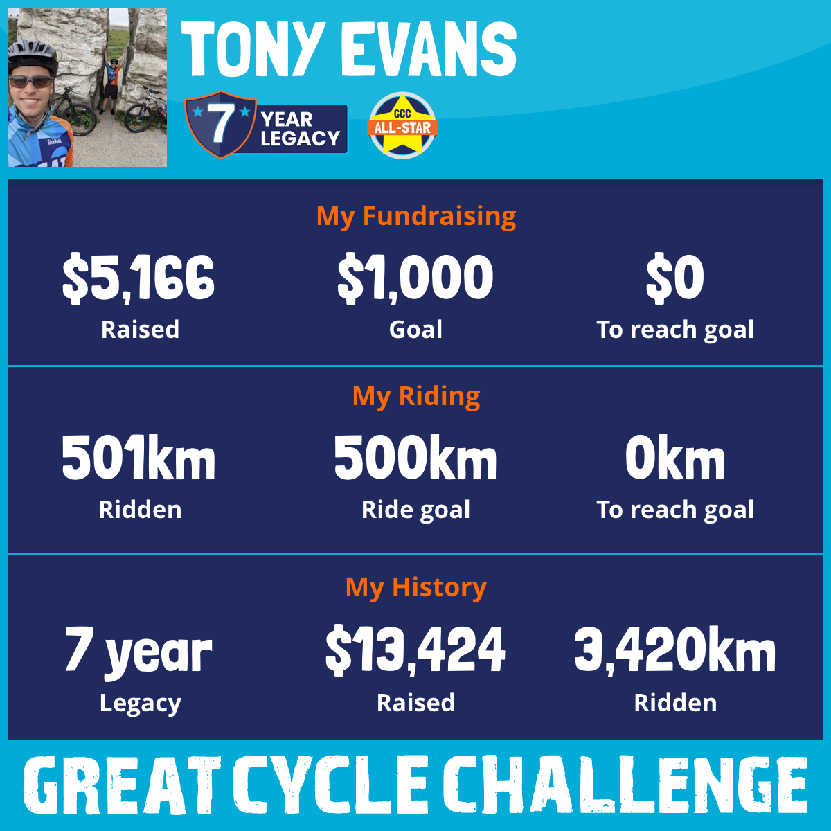 501 km Ridden$5,166 Raised2025