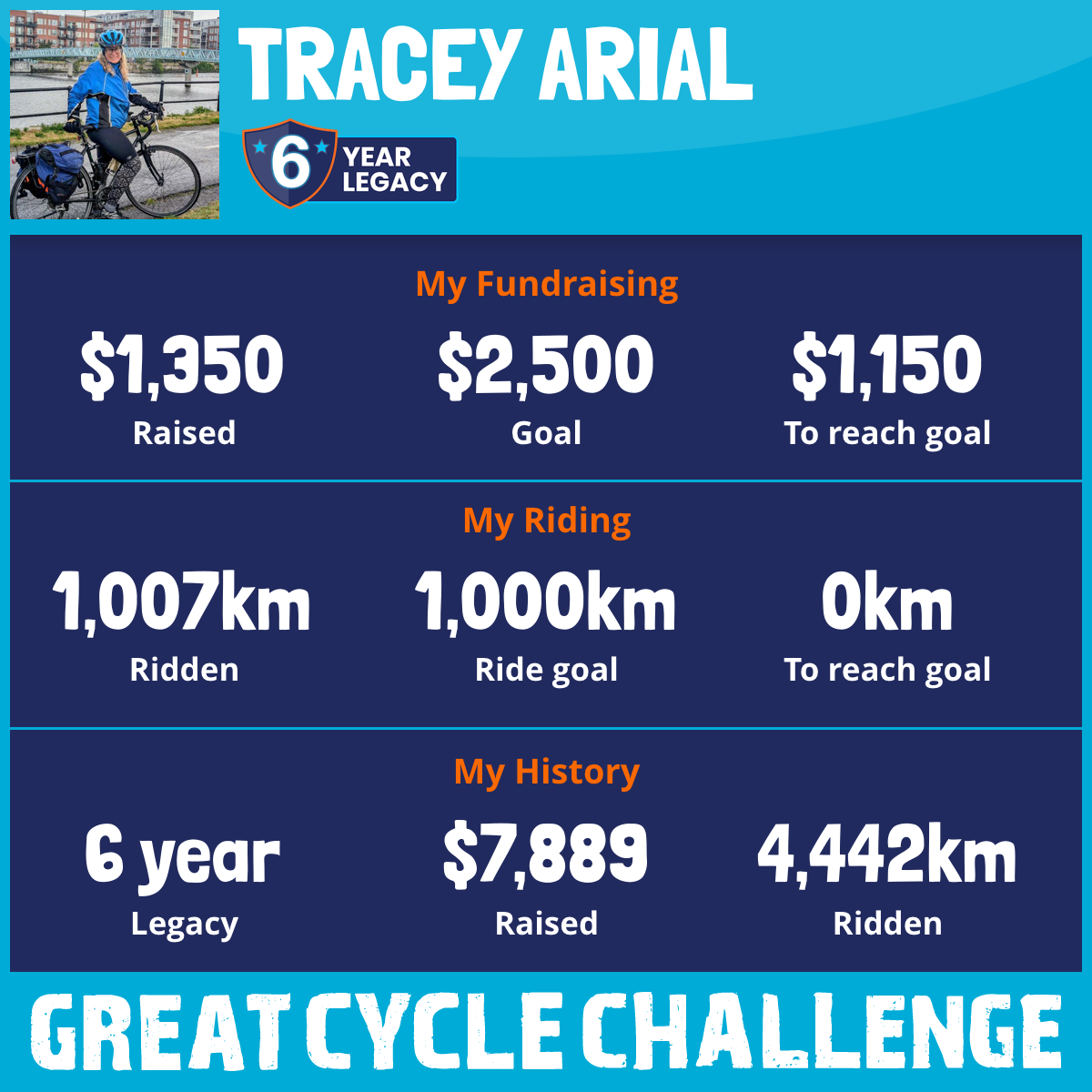 1,066 km Ridden$1,420 Raised2025