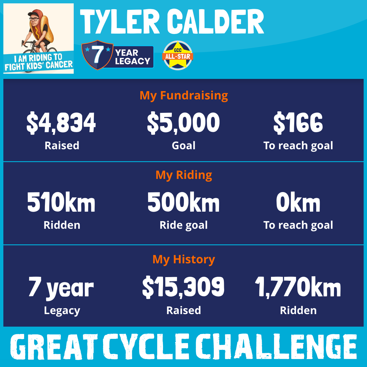 510 km Ridden$4,834 Raised2025