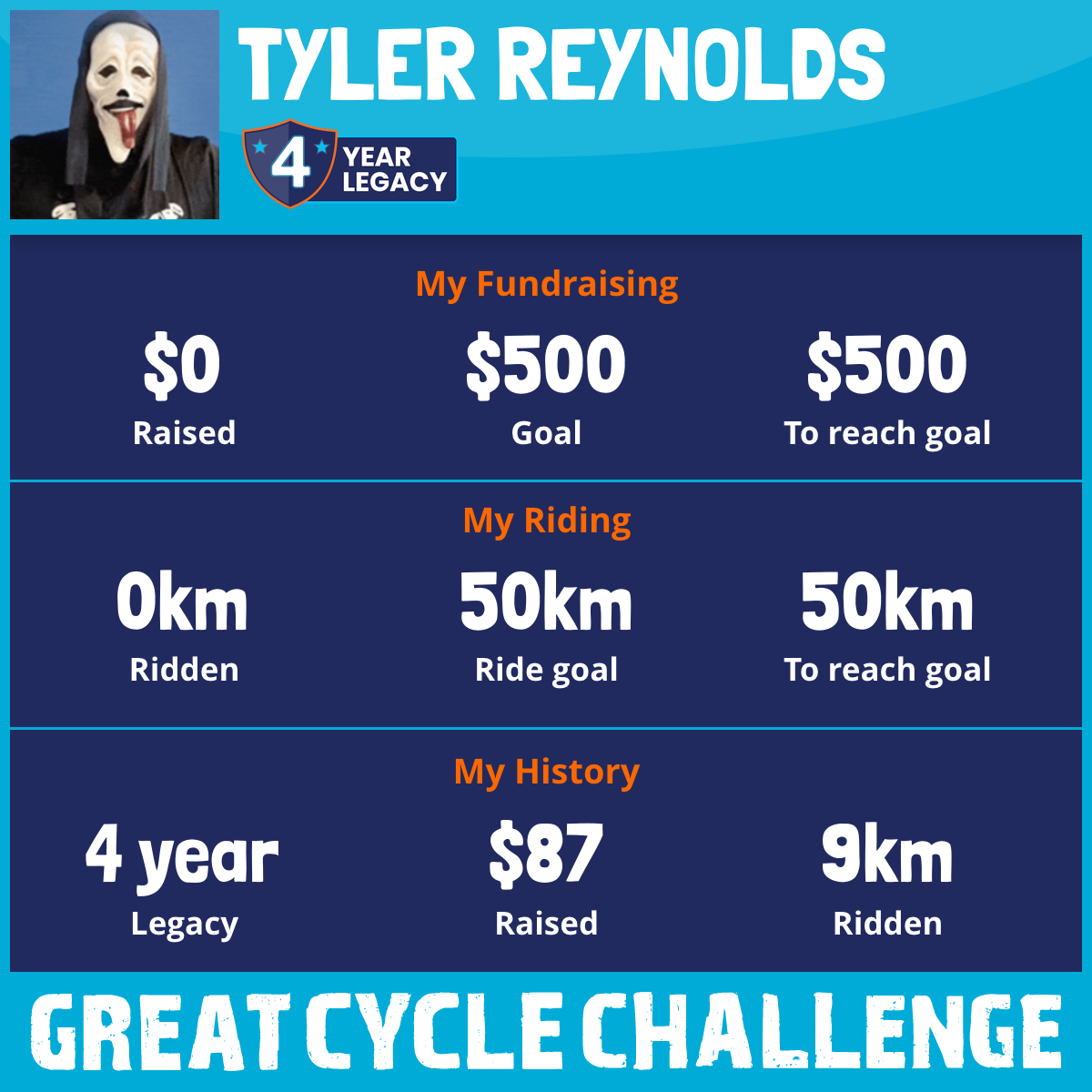 I've raised $0 My goal is $500 Donate Now