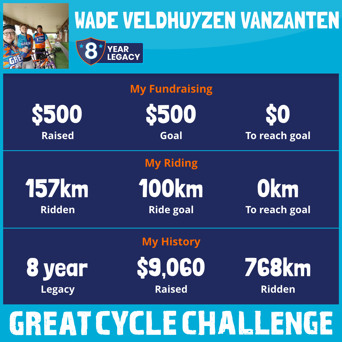 157 km Ridden$500 Raised2025